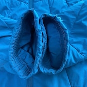 グリーンの表地とオレンジの裏地が映える、人気のバイカラー中綿ダウンです。