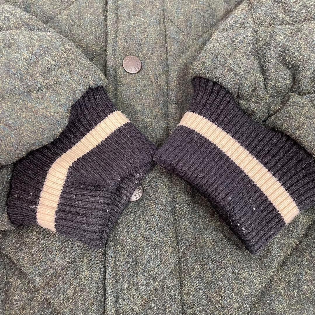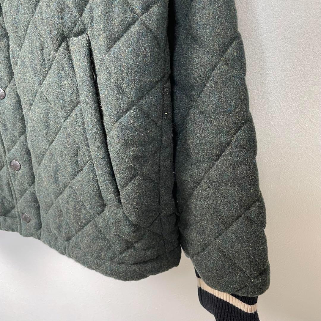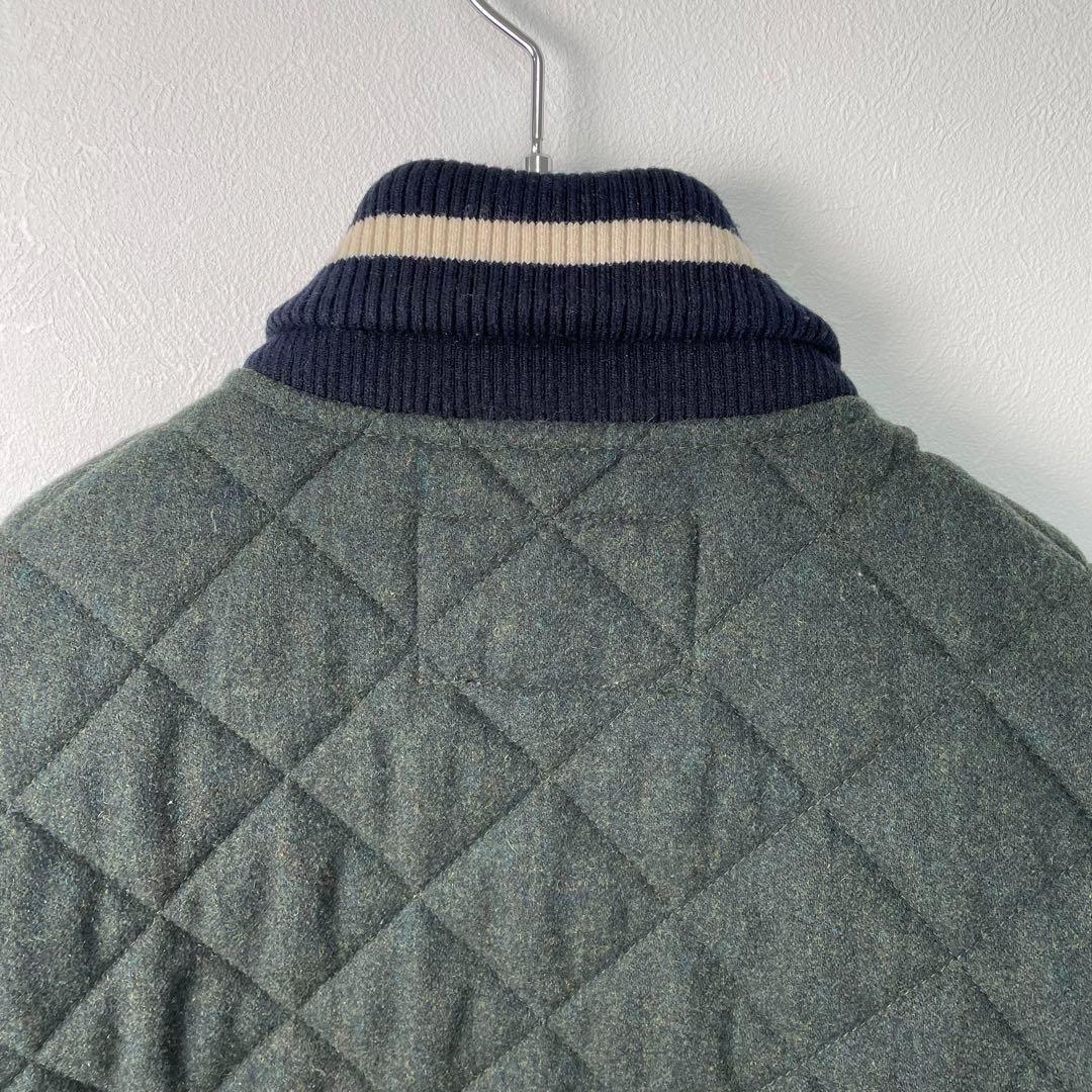 落ち着いたカーキカラーと上品なキルティングデザインが特徴の一着です。