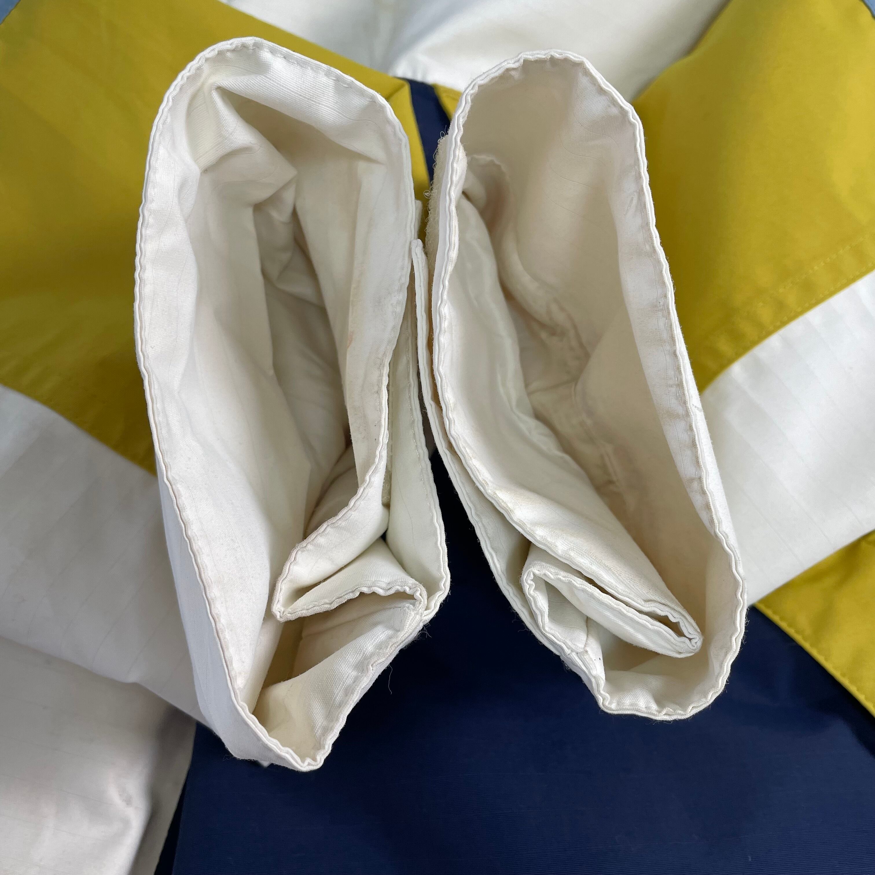 ・ホワイト×ブルー×マスタード×ネイビーのカラー切り替えデザイン