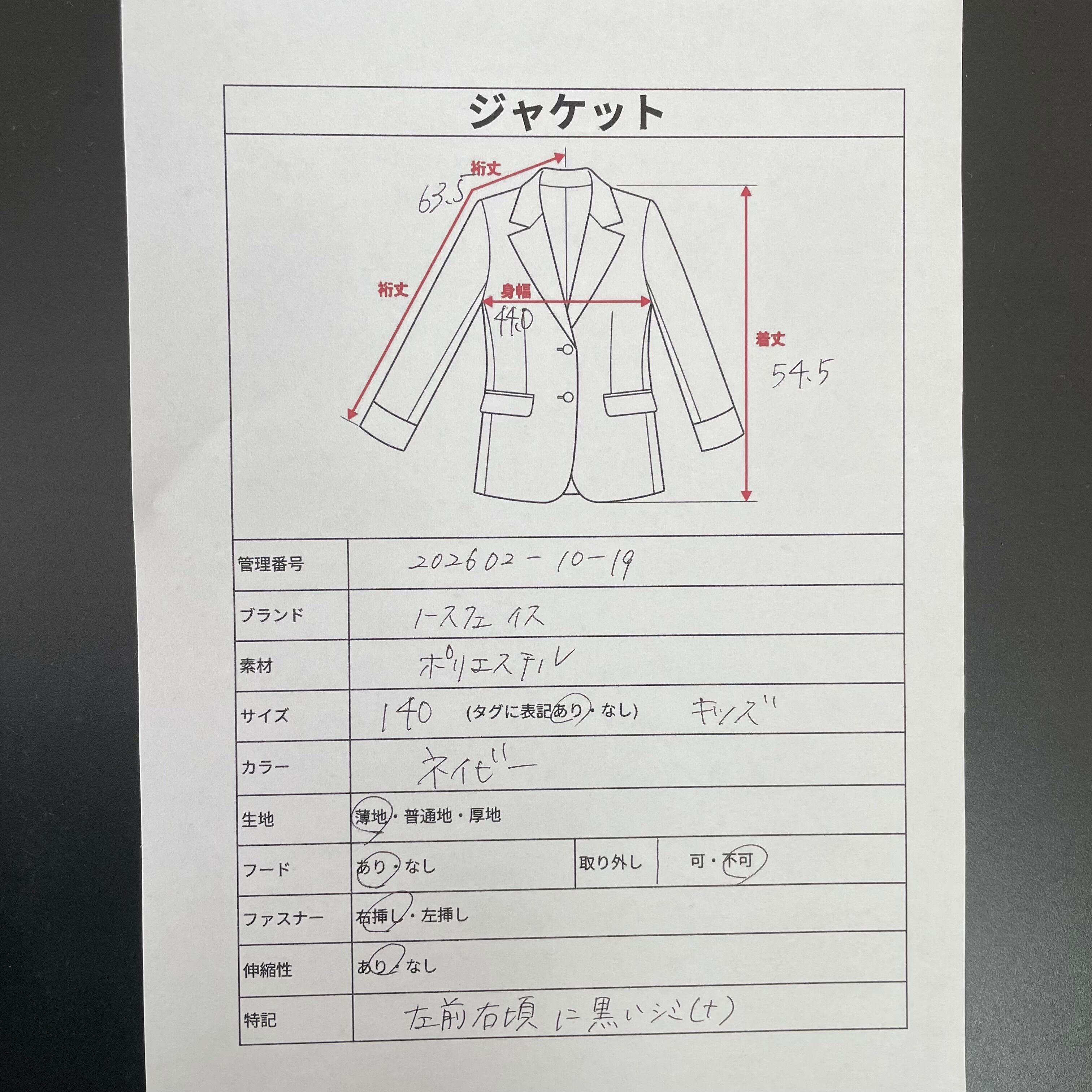 着丈:54.5cm