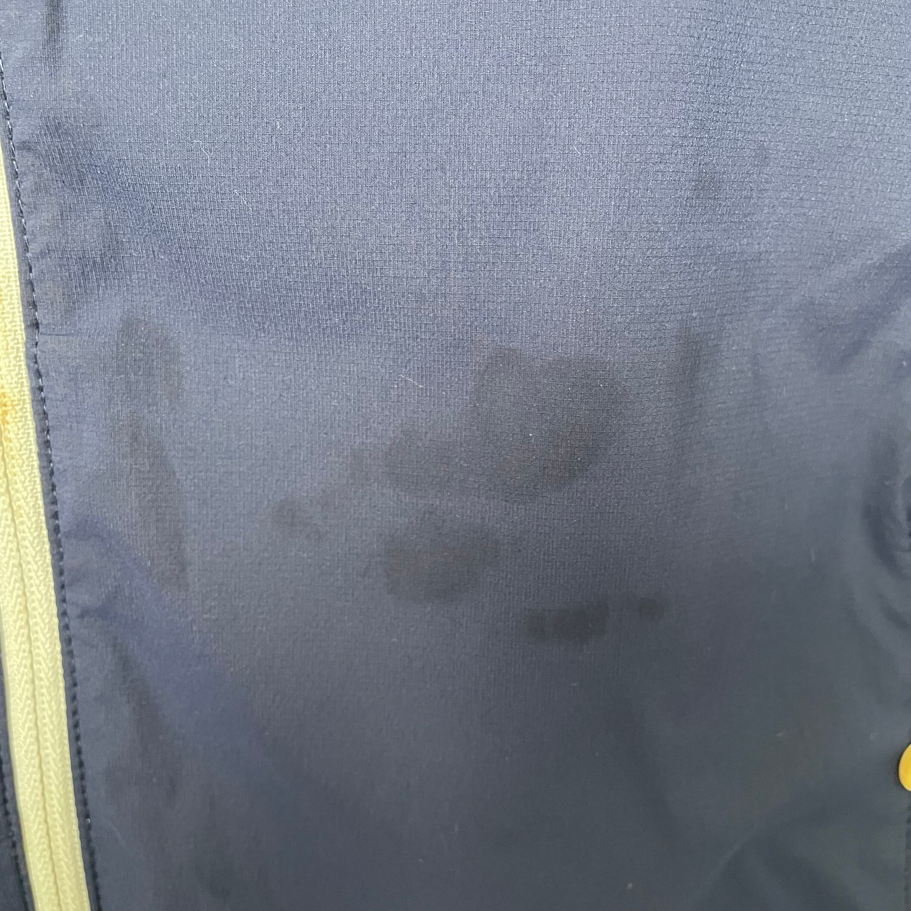 ネイビーの色味により、遠目には目立ちにくいですが、お写真にて状態をご確認ください。